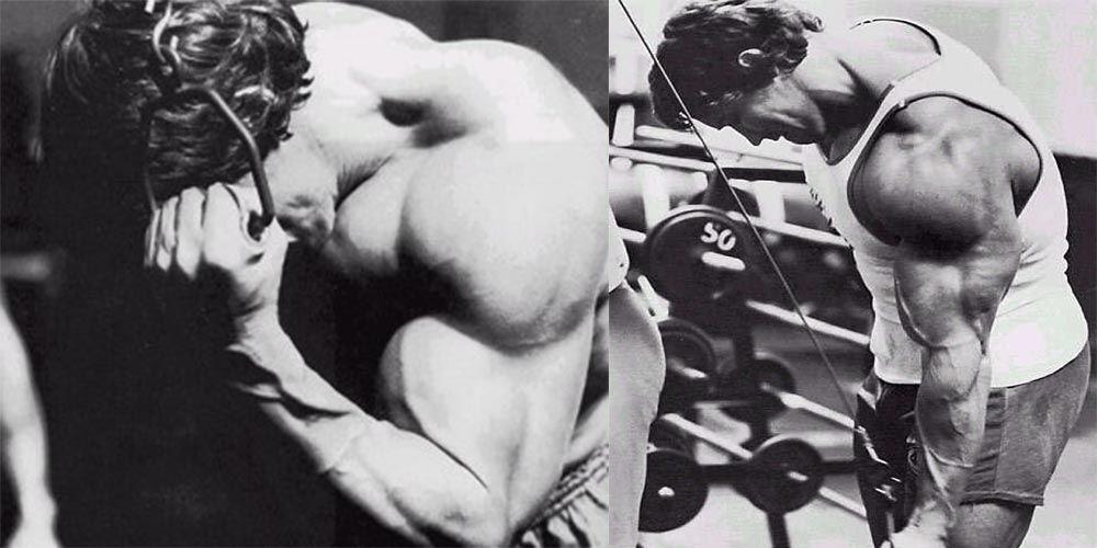 Очередность: в конце тренировки, после тяжелых жимовых и разгибательных упражнений, в комплексе, например, с «задними» отжиманиями от скамьи и французским жимом, или жимом узким хватом и разгибанием руки с гантелью.