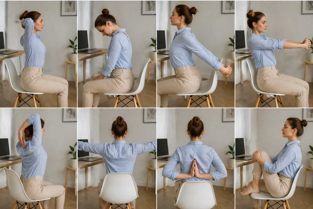 Сидячая работа редко портит самочувствие за один день. Обычно всё начинается незаметно: плечи уходят вперёд, шея тянется к экрану, грудной отдел становится менее подвижным, а к вечеру появляется чувство тяжести в спине. Долгое сидение само по себе не исправить одной «правильной позой». Намного лучше работает связка из двух вещей: короткие перерывы на движение в течение дня и простой комплекс упражнений, который регулярно возвращает телу подвижность и включает мышцы, которые при работе за столом обычно «выключаются». Такой подход хорошо совпадает и с рекомендациями ВОЗ по снижению времени малоподвижного поведения, и с советами Mayo Clinic и NHS делать короткие двигательные паузы и простые упражнения для шеи, груди, спины и корпуса.